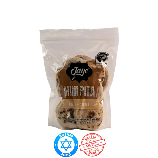 Los Mini Panes Pita Integrales Jaye 500g están elaborados con harina integral, aportando un alto...