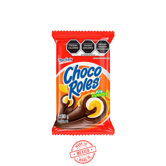 Los Choco Roles Marinela son pastelitos esponjosos rellenos de crema sabor piña y cubiertos con...