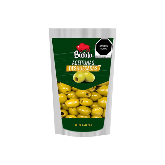 Disfruta el auténtico sabor de las Aceitunas Búfalo sin hueso (175 g), perfectas para bocadillos, ensaladas...