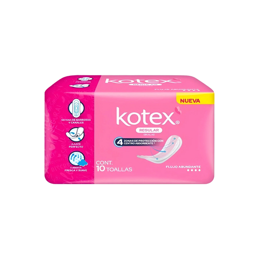 Disfruta protección personalizada y comodidad con la toalla femenina anatómica Kotex sin alas (c/10 pzas)....