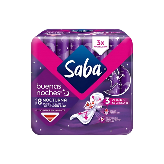 Disfruta descanso y protección seguros con las Toallas Femeninas Saba Buenas Noches con alas (8...
