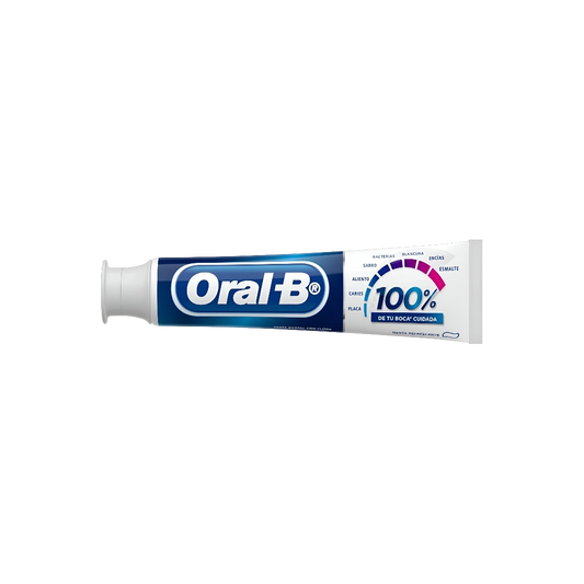 La pasta dental Oral-B 100% limpia profundamente tu boca mientras protege dientes y encías. Su...