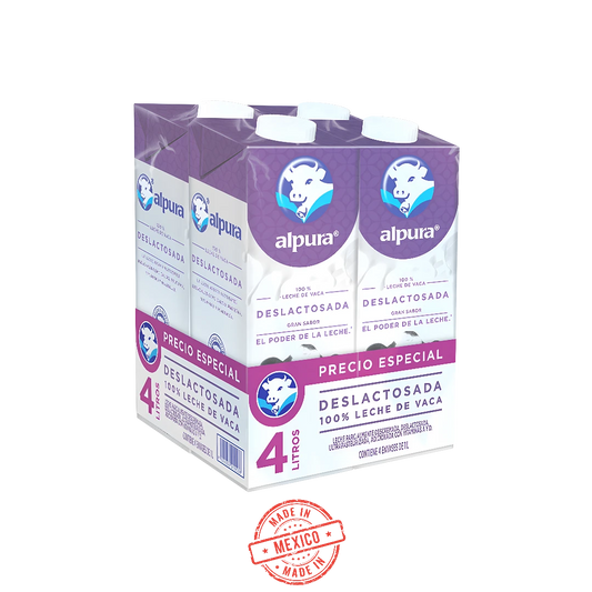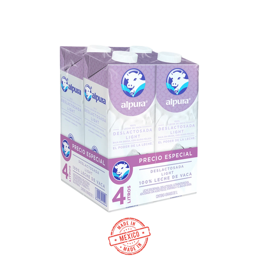 Esta leche deslactosada light de Alpura, en presentación de 4 pack de 4 litros, es...