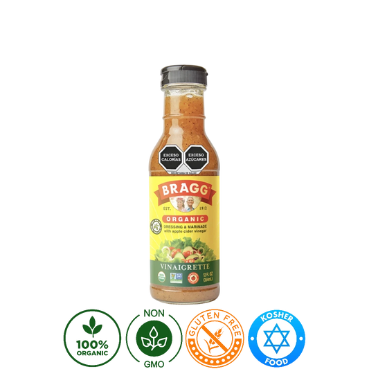 Agrega un delicioso sabor a tus ensaladas y platillos con la Vinagreta Orgánica Bragg 354g....