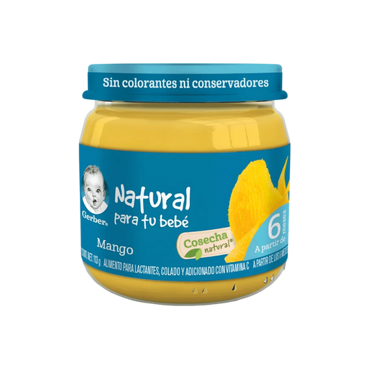 Papilla Gerber de mango, especialmente diseñada para bebés en etapa 1. Hecha con fruta 100%...