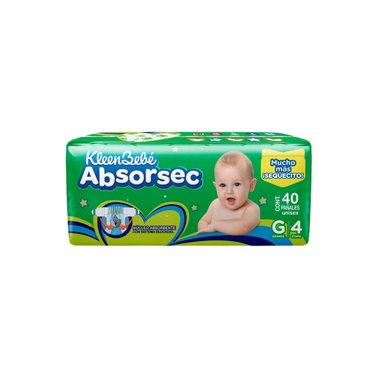 El Pañal para Bebé KleenBebé Absorsec, Talla Grande con 40 Piezas, también conocido como "El...
