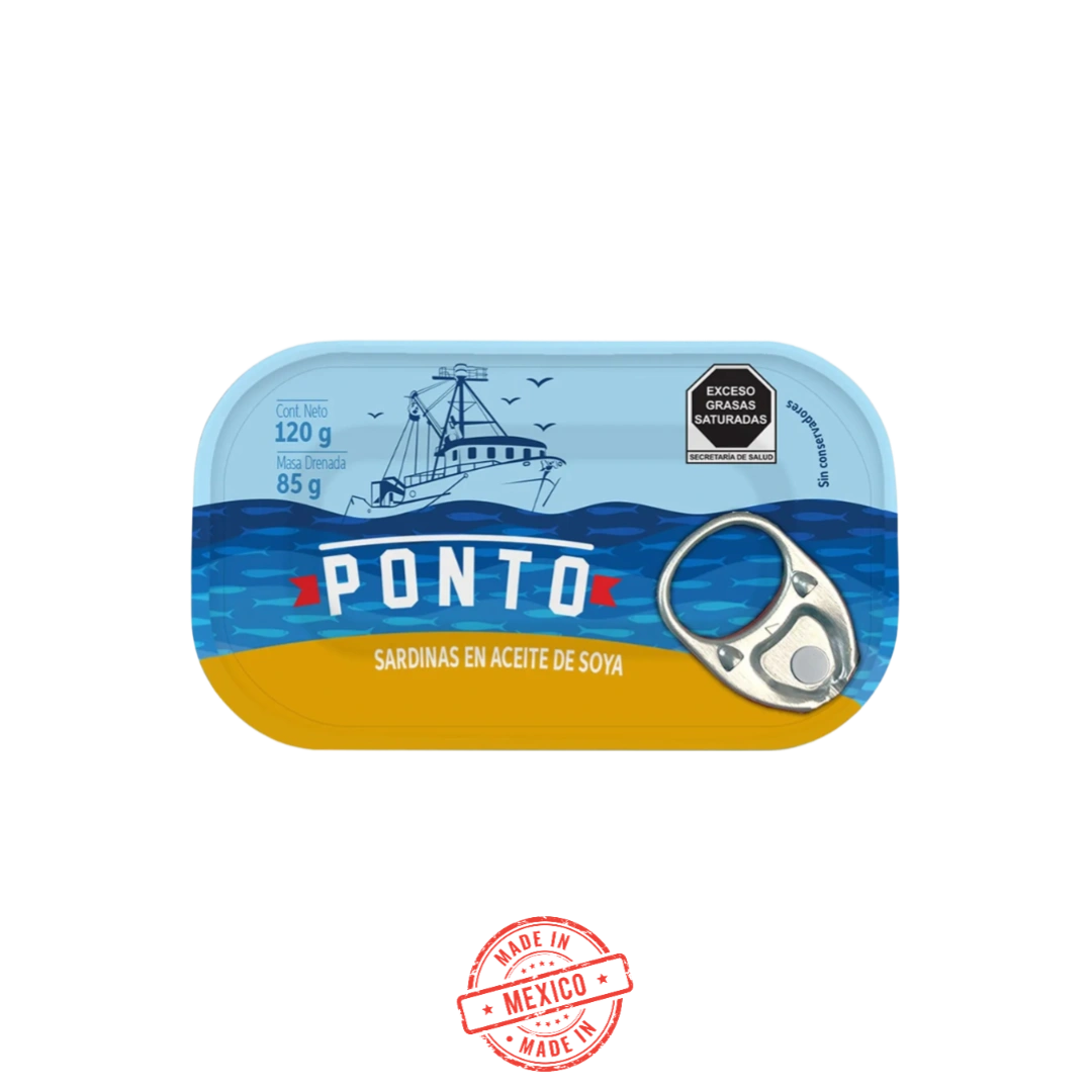 Disfruta de sardinas seleccionadas conservadas en aceite de soya, que realza su sabor natural. Ricas en proteínas y ácidos grasos omega-3, son una opción nutritiva para tus comidas. Ideales para aperitivos, ensaladas o como complemento en tus recetas favoritas. ¡Añade calidad y sabor a tu mesa con Ponto!