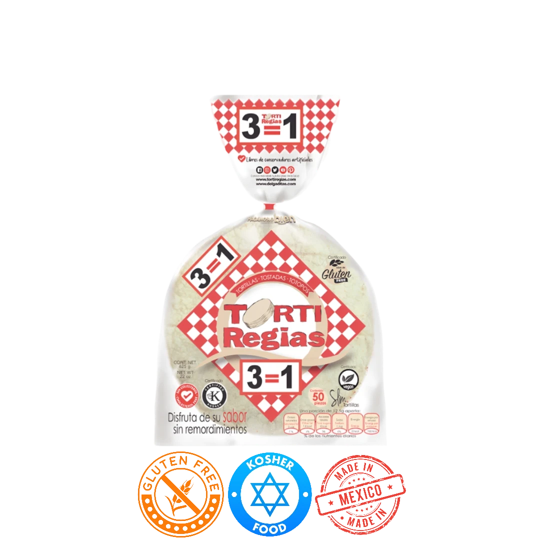 ¡Saborea las deliciosas TortiRegias delgaditas blancas sin preocuparte por las calorías! Nuestra exclusiva receta te permite comer 3 tortillas con solo un carbohidrato. Son Kosher, Veganas, Halal y sin gluten. ¡Disfruta de su sabor auténtico y beneficios saludables!