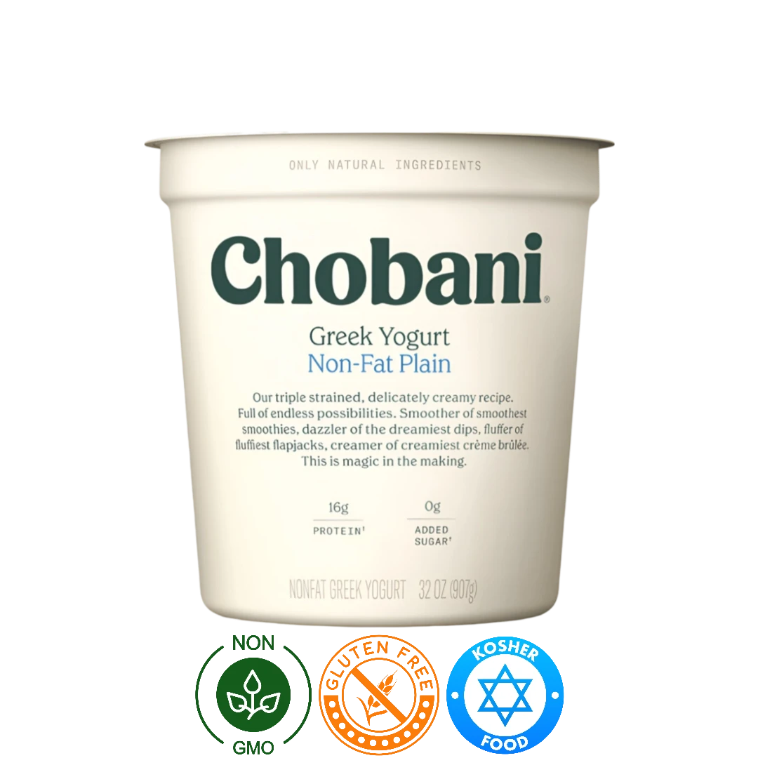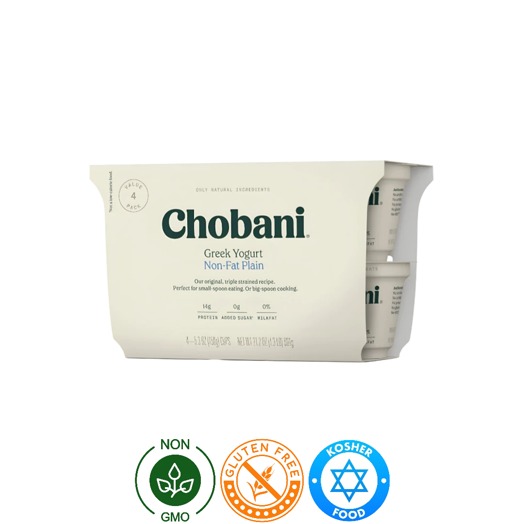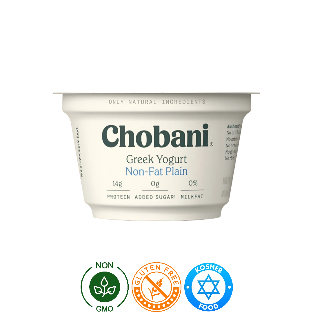 Nuestro Yogurt Griego Natural Chobani está hecho solo con ingredientes naturales, sin gluten ni azúcares añadidas. Además, no contiene ingredientes OGM. Disfrute de un yogurt sin grasa, rico en calcio y proteína. ¡Una opción saludable y deliciosa para su dieta! No contiene sellos ni leyendas.